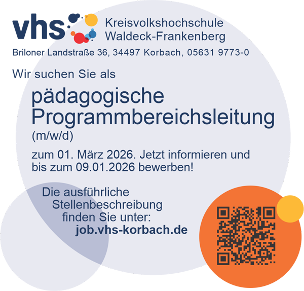 Für Rückfragen steht Ihnen der vhs-Direktor Herr Wolf (05631 9773 17) zur Verfügung.